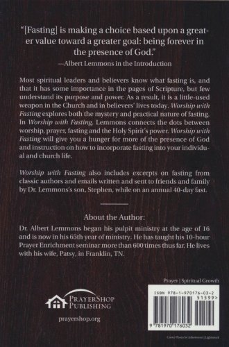 Worship with Fasting is written by highly gifted and re-spected teacher, Dr. Albert Lemmons. In fact, Dr. Thomas Keith Roberts in the Foreword, quotes a pastor who once told him, "When Albert Lemmons clears his throat, he gives you more wisdom than most people can by talking all day long."