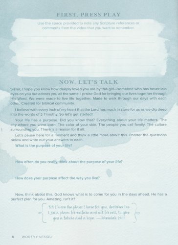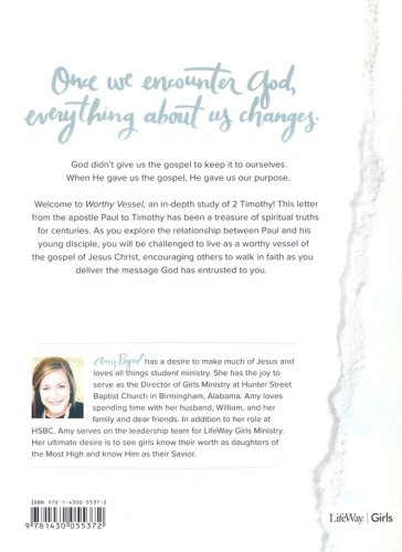 Worthy Vessel is a six-session resource by Amy Byrd that will lead girls through an in-depth study of 2 Timothy. They will examine biblical context and a multitude of spiritual truths in this letter from the apostle Paul to Timothy. As they explore the relationship between Paul and his young disciple, girls will be challenged to live as worthy vessels of the gospel of Jesus Christ, encouraging others to walk in faith as they deliver the message God has entrusted to them.