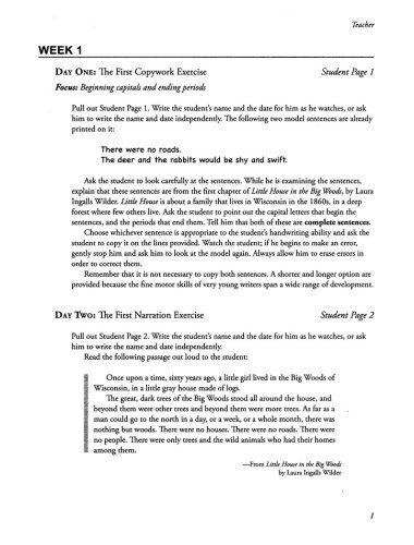Writing with Ease – Level One, Workbook