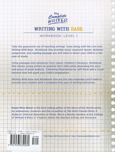 A new series on teaching writing, from the author of "The Well-Trained Mind," In "Writing with Ease," Susan Wise Bauer lays out an alternative plan for teaching writing, one that combines the best elements of old-fashioned writing instruction with innovative new educational methods. The workbooks provide lessons, student worksheets, and teacher instructions for every day of writing instruction. Each covers one year of study. Used along with "Writing with Ease," Level One (first in a planned four-volume set) completes the elementary-grade writing curriculum.
