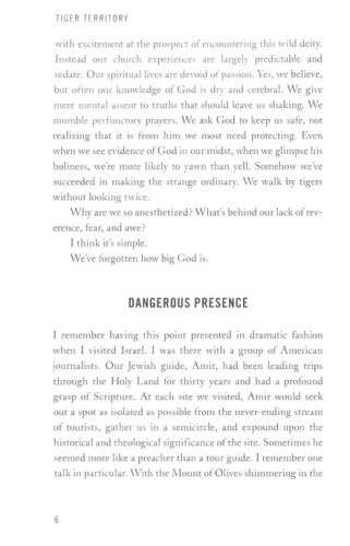 Yawning at Tigers takes us past domesticated Christianity, into the wilds where God’s raw majesty, love, and power become more real and transformative than we could ever imagine.