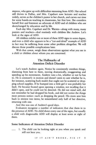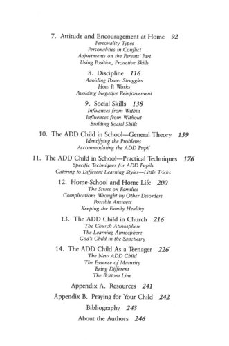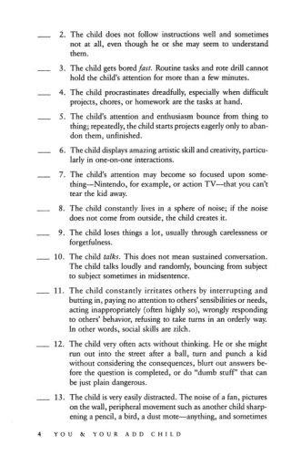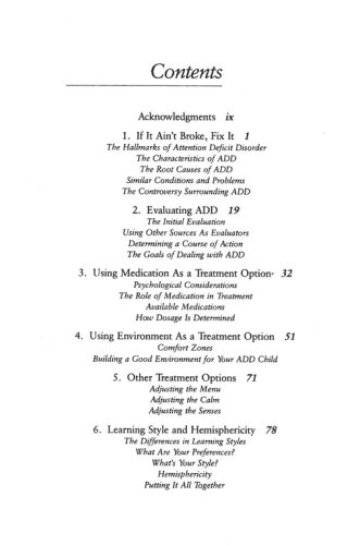 Issues tackled within this book include: figuring out just what ADD is, evaluating the condition, when and how medical treatment should be used, alternative options, and how to deal with the ADD child in various functions and settings. The text is a healthy mix of practical application along with medical jargon.