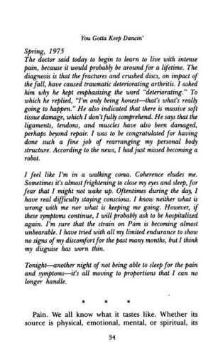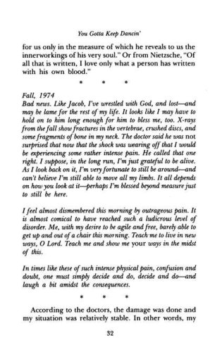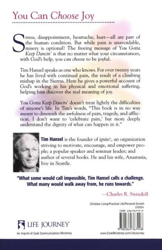 Tim Hansel speaks as one who knows. For the past ten years he has lived with continual physical pain, the result of a climbing mishap in the Sierras. But You Gotta Keep Dancin’ is not just another story of a Christian who had an accident. It is a powerful account of God’s working in one man’s physical and emotional suffering, helping him discover the real meaning of joy.