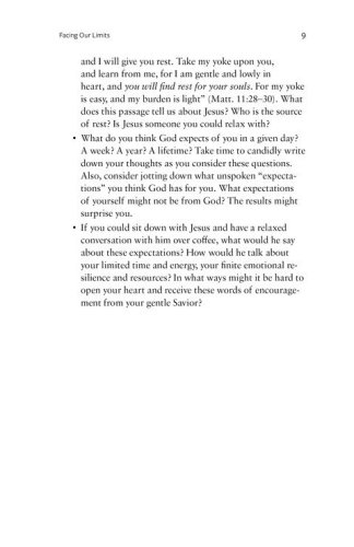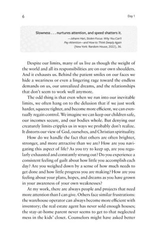 Each devotion begins with a meaningful quote and ends with reflection questions. Kapic shows that limitations aren't sinful but rather that God purposefully designed humans to have limits and depend on one another. Rightly appreciated, these good limits promote freedom, joy, growth, and community.