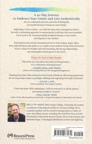 This devotional is based on Kapic's 2022 book, You're Only Human, and covers the same themes in a more accessible format. As you take this 40-day devotional journey, you'll follow a path to more holistic living that fosters a vision for healthy self-understanding, life-giving relationships, and meaningful contributions to the world.