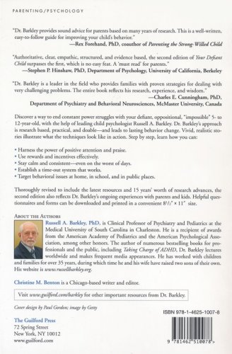 Mental health professionals, see also the related title, Defiant Children, Third Edition: A Clinician's Manual for Assessment and Parent Training. For a teen focus, see also Defiant Teens, Second Edition (for professionals), and Your Defiant Teen, Second Edition (for parents), by Russell A. Barkley and Arthur L. Robin.