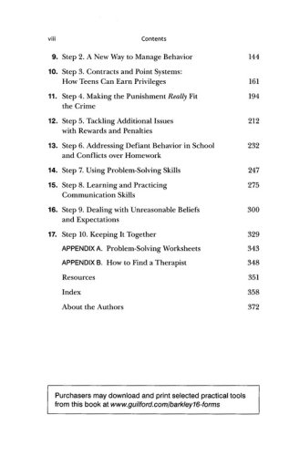 Mental health professionals, see also the authors' Defiant Teens, Second Edition: A Clinician's Manual for Assessment and Family Intervention. For a focus on younger children, see also Dr. Barkley's Defiant Children, Third Edition (for professionals), and Your Defiant Child, Second Edition (for parents).