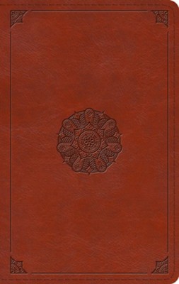 ESV Large Print Thinline Bible–soft leather-look, english saddle, emblem