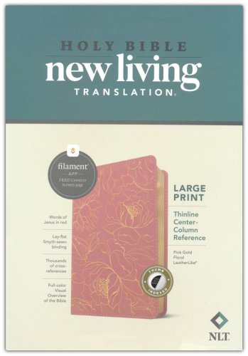 NLT Large Print Thinline Center-Column Reference Bible, Filament Enabled–soft leather-look, pink & gold floral (indexed)