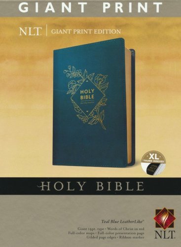NLT Giant-Print Holy Bible–soft leather-look, teal blue (indexed) – Imperfectly Imprinted Bibles