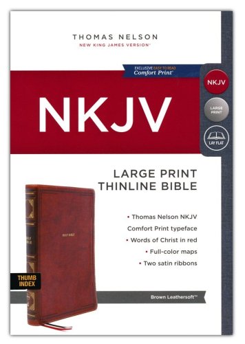 NKJV Large-Print Thinline Bible, Comfort Print–soft leather-look, brown (indexed)