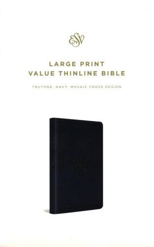 ESV Large-Print Value Thinline Bible–soft leather-look, navy with mosaic cross design