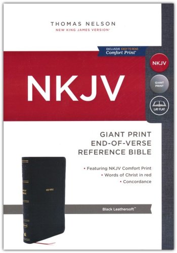 NKJV Giant Print End-of-Verse Reference Bible–soft leather-look, black